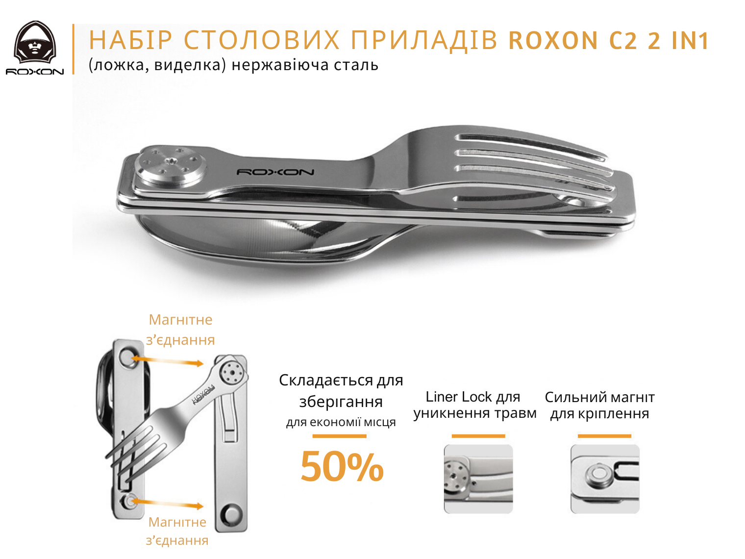 Набір столових приладів Roxon C2 (ложка-вилка кишенькова)