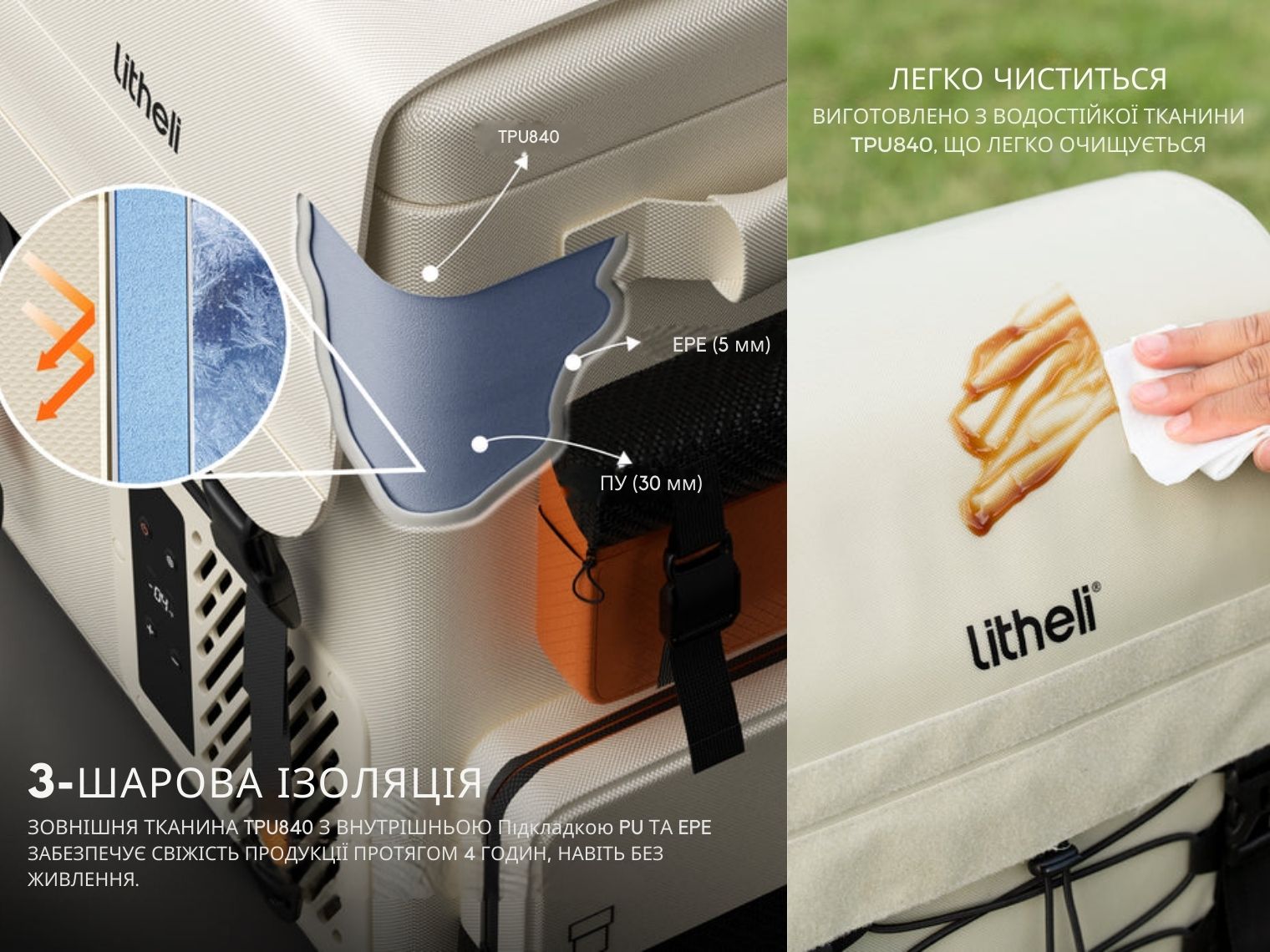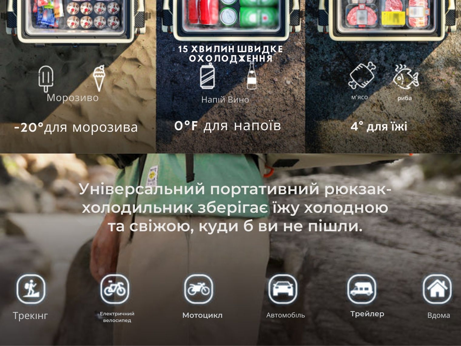 - підтримка стабільно низької температури всередині протягом 4 год без підзаряджання;