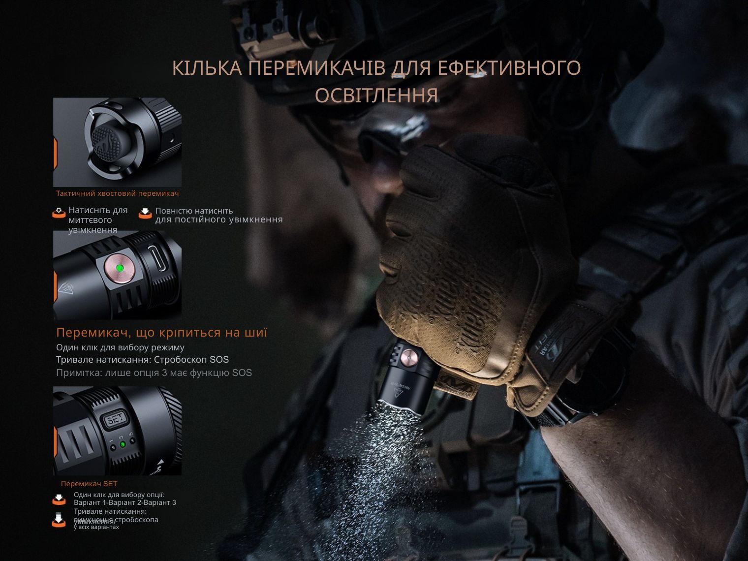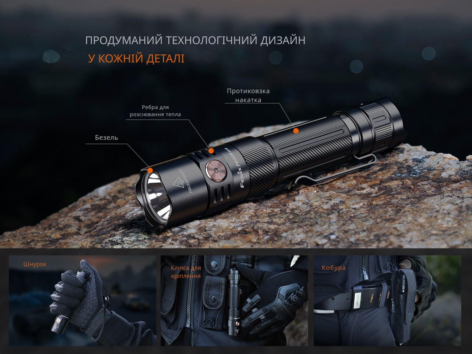 - тактичний ліхтар Fenix PD35R ACE з інноваційною системою налаштування інтерфейсу;