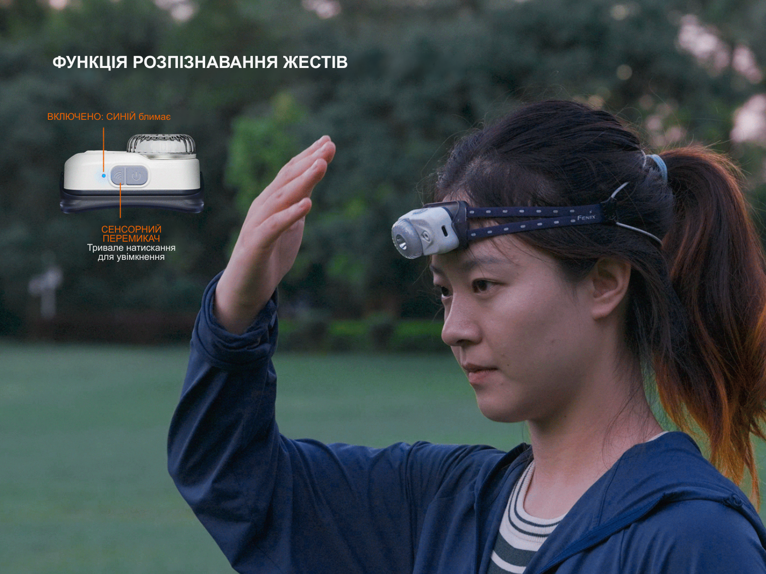 - налобний ліхтар з функцією керування жестами;