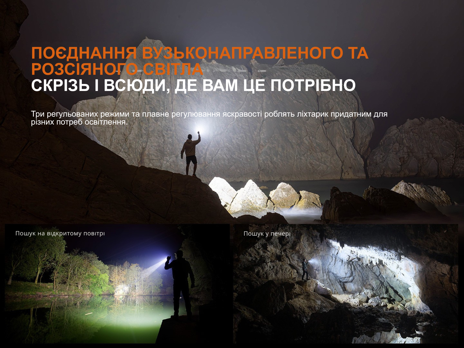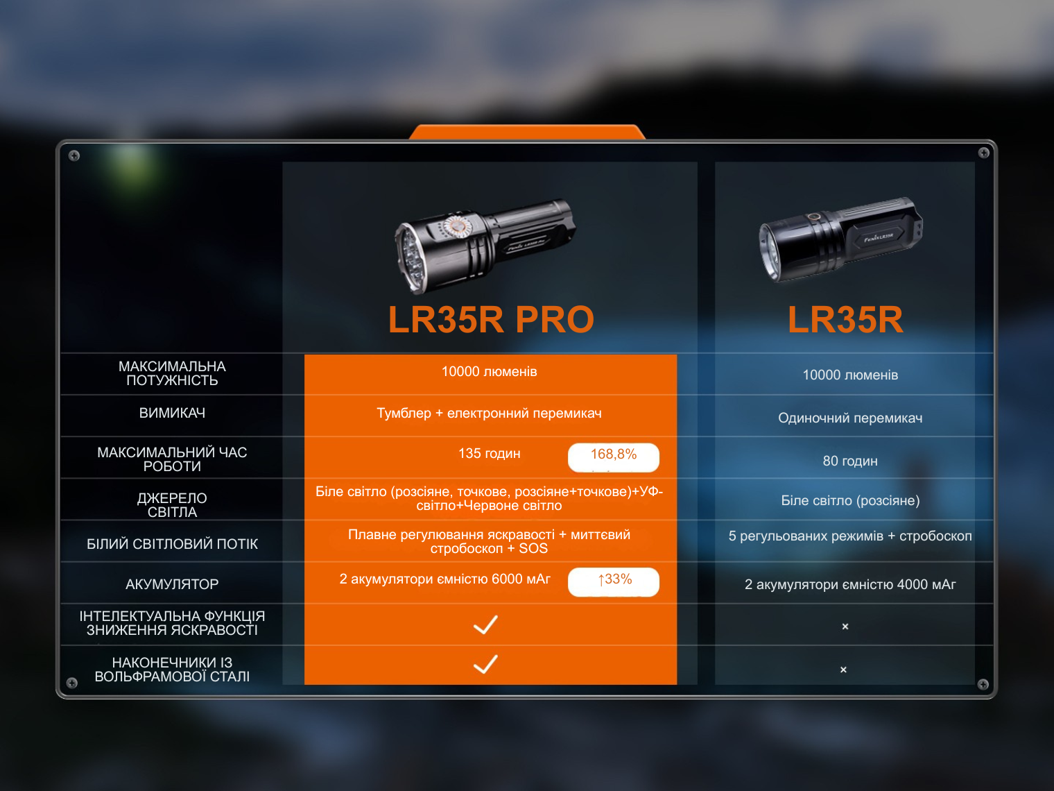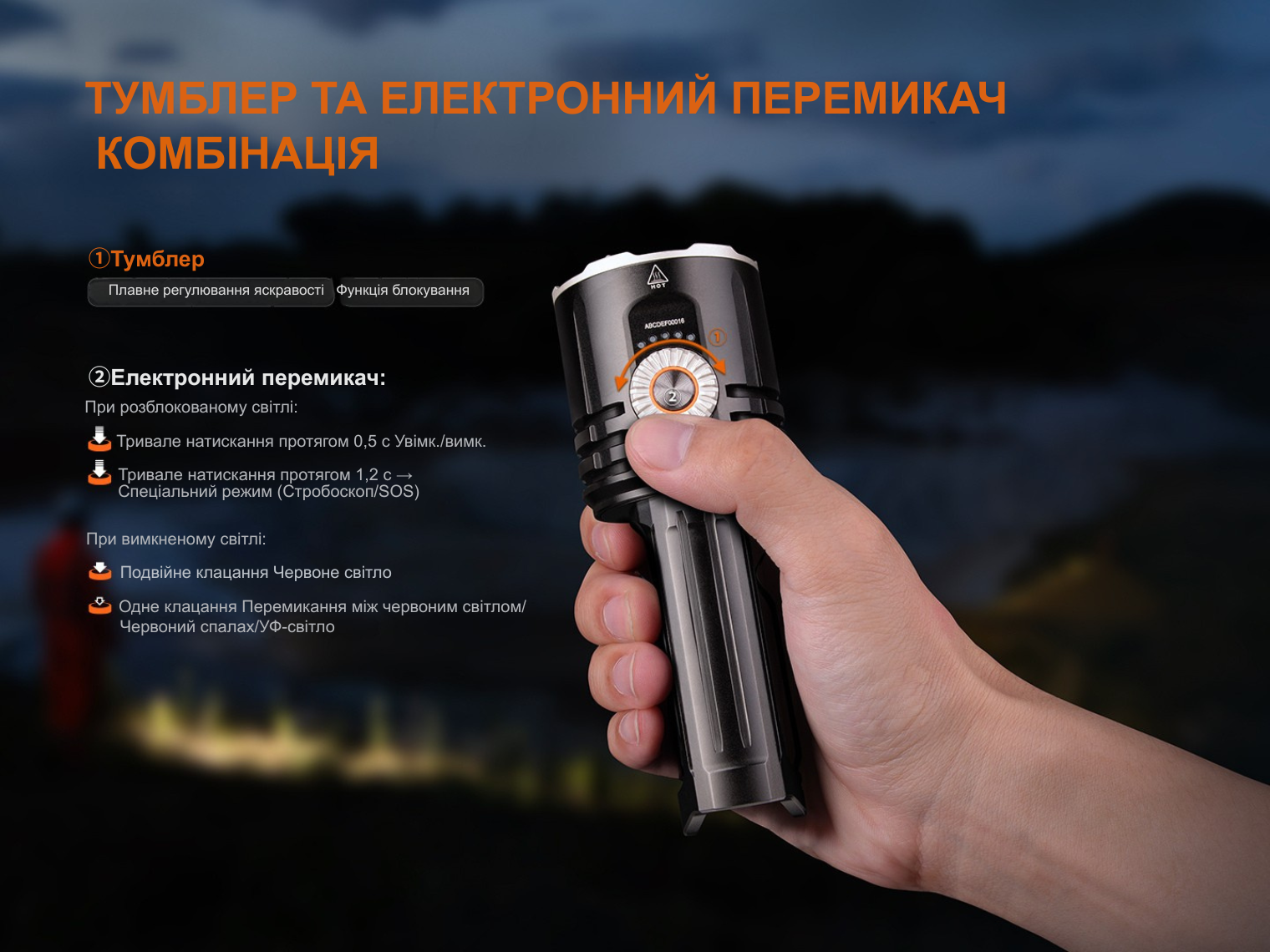Fenix LR35R PRO — ручний ліхтар з інноваційним функціоналом, націленим на універсальність у використанні та зручне керування.