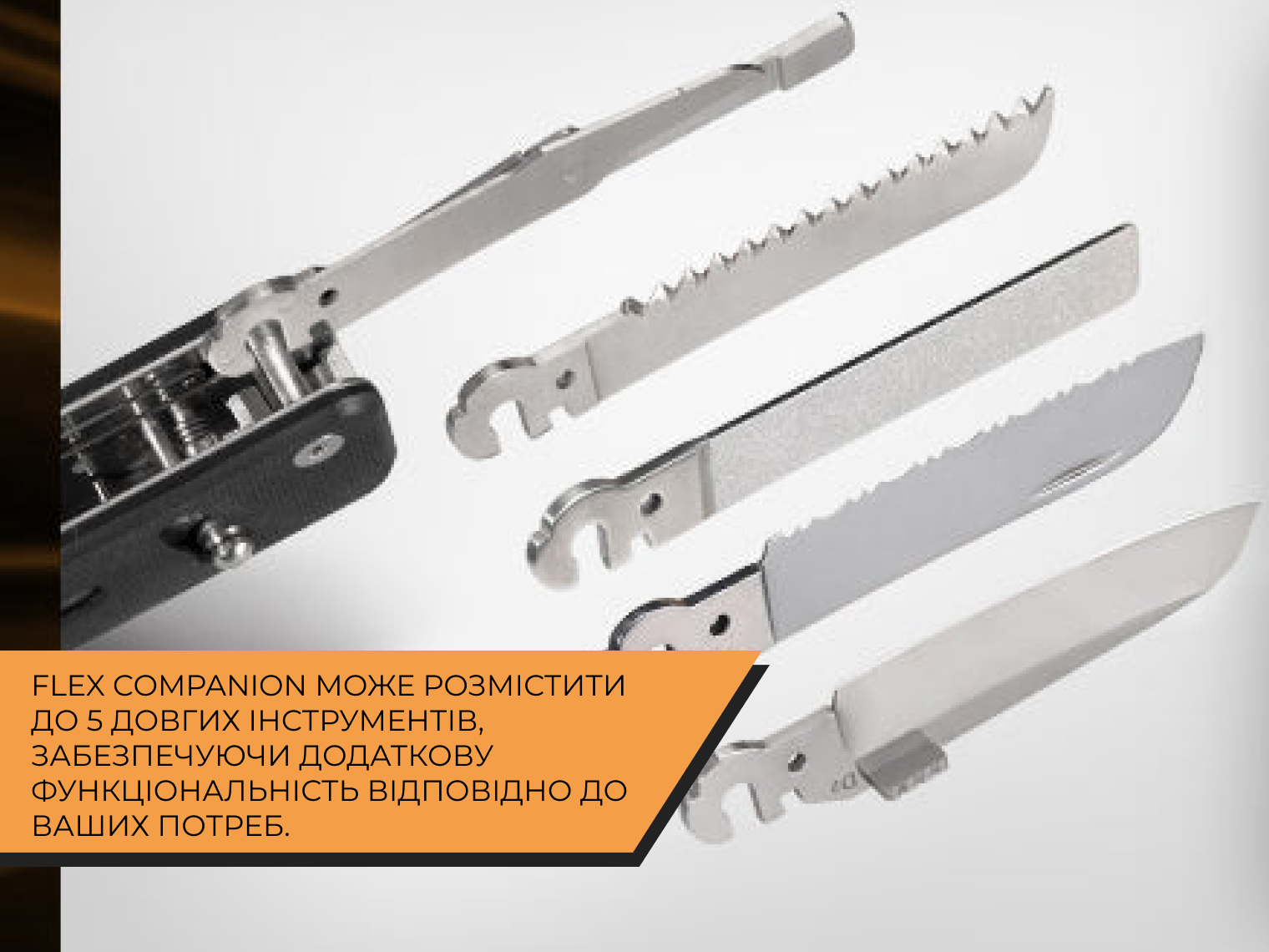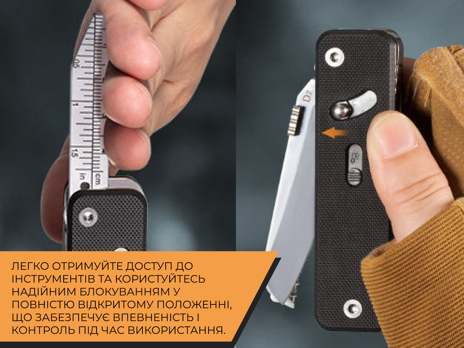 • жорстка фіксація інструментів (рівень безпеки, близький до повнорозмірних мультитулів);